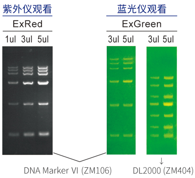 ■ ExGreen核酸電泳染料 (10,000× DMSO溶) ★ 通過(guò)以下測(cè)試,均證明無(wú)致癌風(fēng)險(xiǎn) 1.小鼠骨髓微核測(cè)試;2.染色體畸變測(cè)試; 3.艾姆斯測(cè)試;4.乳膠或腈類手套滲透測(cè)試。 ★ 適用于各種大小片段的電泳染色, 條帶整齊性遠(yuǎn)高于普通花菁類染料, 對(duì)核酸遷移的影響較小。 | ![]() |