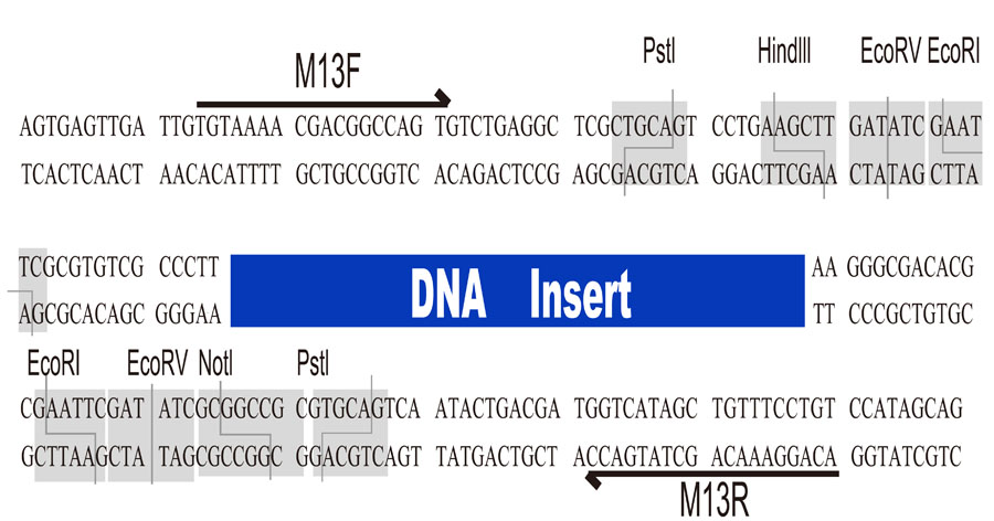 注1:“M13通用引物”有多種不同的序列,且個(gè)別引物合成公司默認(rèn)的M13引物與此載體所用的M13序列有差異,合成使用前務(wù)必先核對序列。