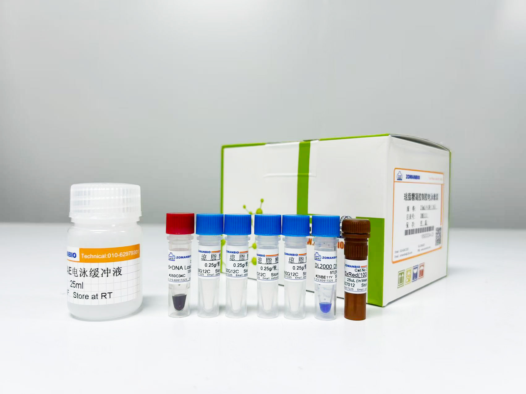 產(chǎn)品名稱:瓊脂糖凝膠制膠電泳套裝(ZMS111)