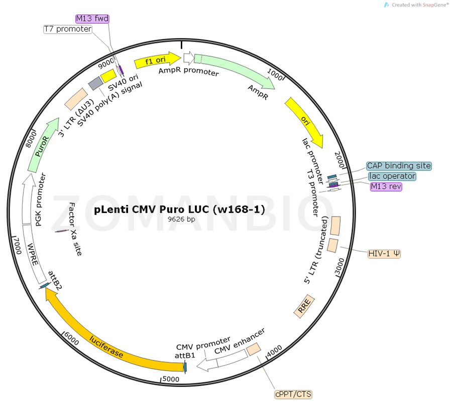 ZK805pLenti CMV Puro LUC (w168-1) 慢病毒表達(dá)質(zhì)粒.txt