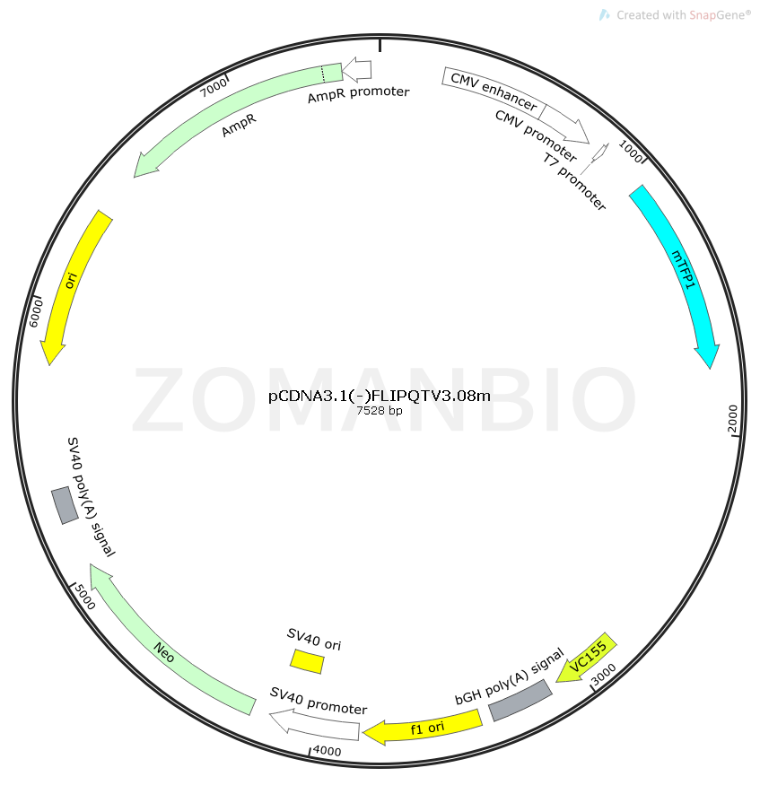 質(zhì)粒序列請(qǐng)下載:ZK1866 pcDNA3.1(-) FLIPQTV3.0 8m谷氨酰胺傳感器質(zhì)粒.txt
