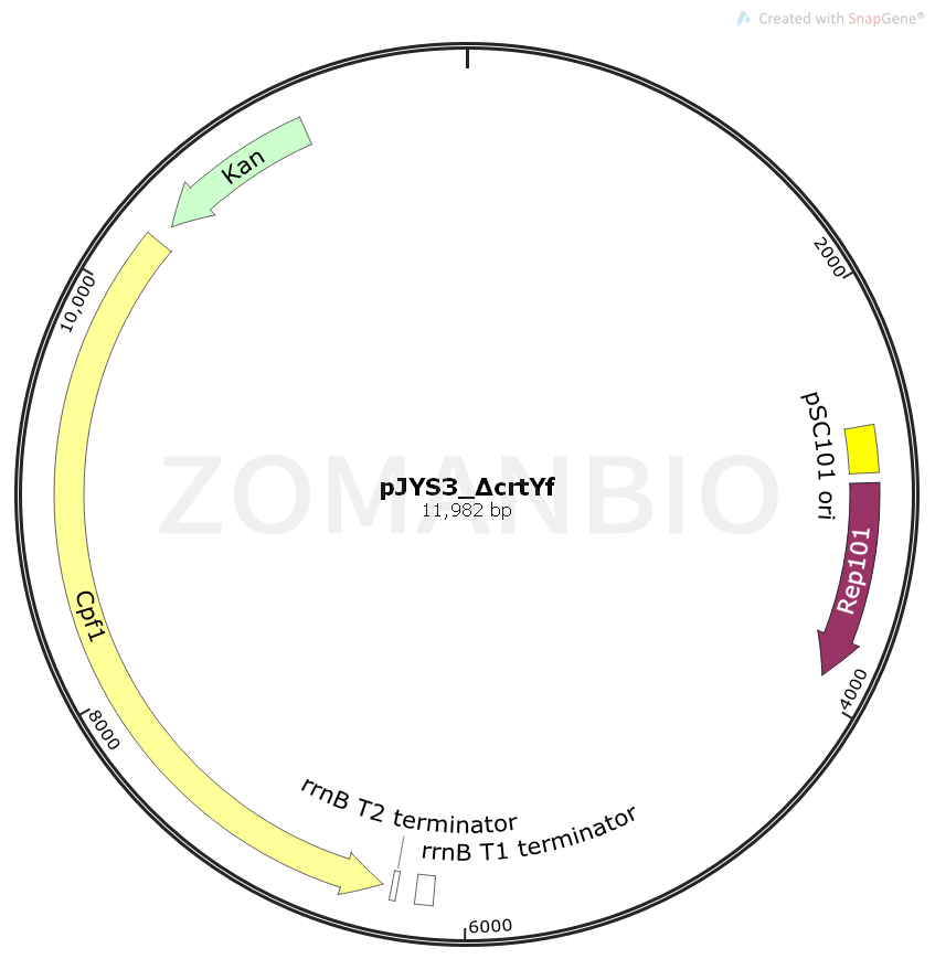 質(zhì)粒序列請下載:ZK1869 pJYS3_ΔcrtYf大腸敲除質(zhì)粒.txt